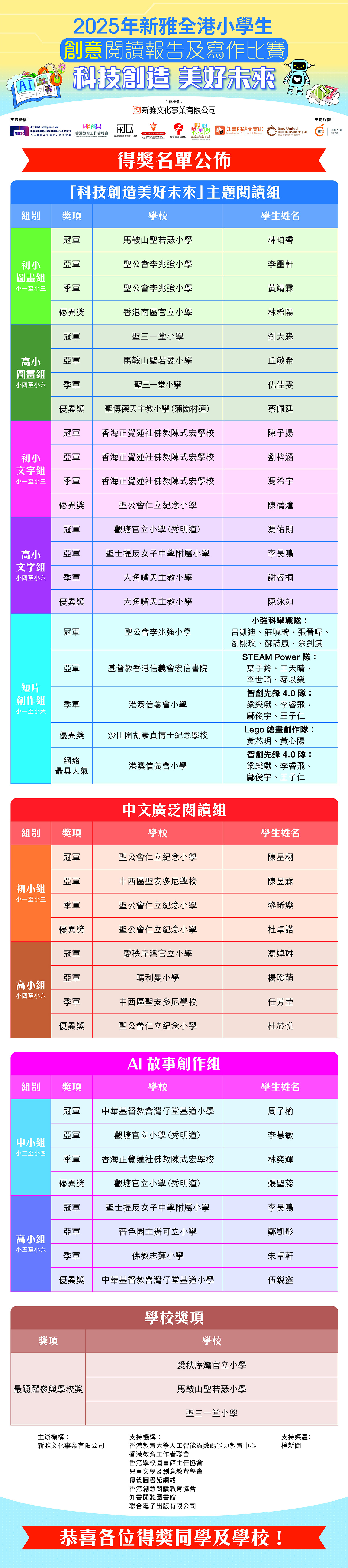 得獎名單公佈:2025年新雅全港小學生創意閱讀報告及寫作比賽「科技創造美好未來」