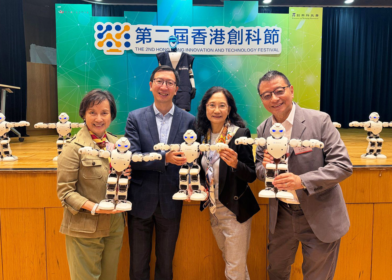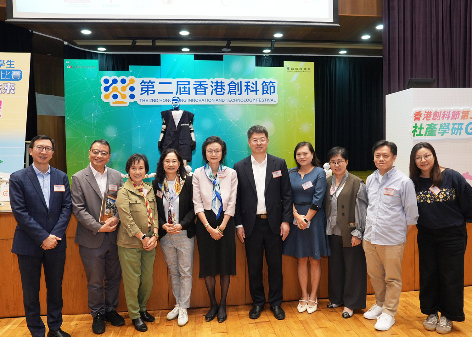 典禮尾聲,大會特別安排了精彩的AI機器人表演節目,九台智能機器人流暢的舞步和生動的互動,為現場帶來充滿科技感的壓軸演出。頒獎典禮圓滿結束後,參加者興致未減,繼續投入到第二屆香港創科節「社產學研」展帶來的豐富科技活動與互動體驗中,現場氣氛熱烈。